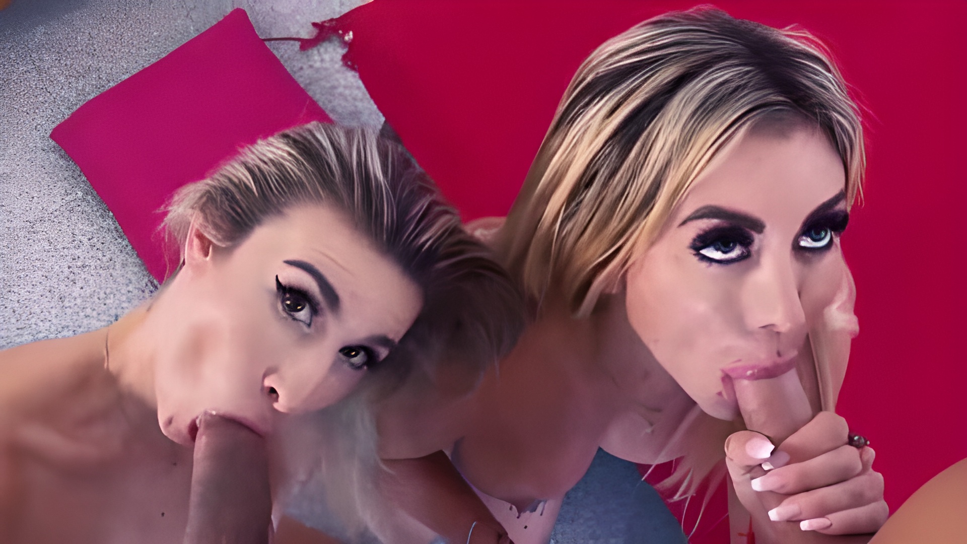 Sexual foursome, very hot, with a very hot real couple Two blondes playing with two huge cocks