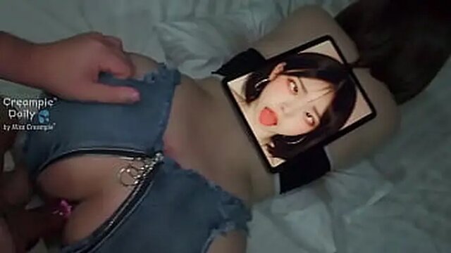 A pretty, chubby, and slutty roommate gets caught while fucking her boyfriend in their bedroom. She rides him doggystyle and missionary while he pounds her tight, juicy pussy. He fills her with a huge cumload, leaving her with a creampie.