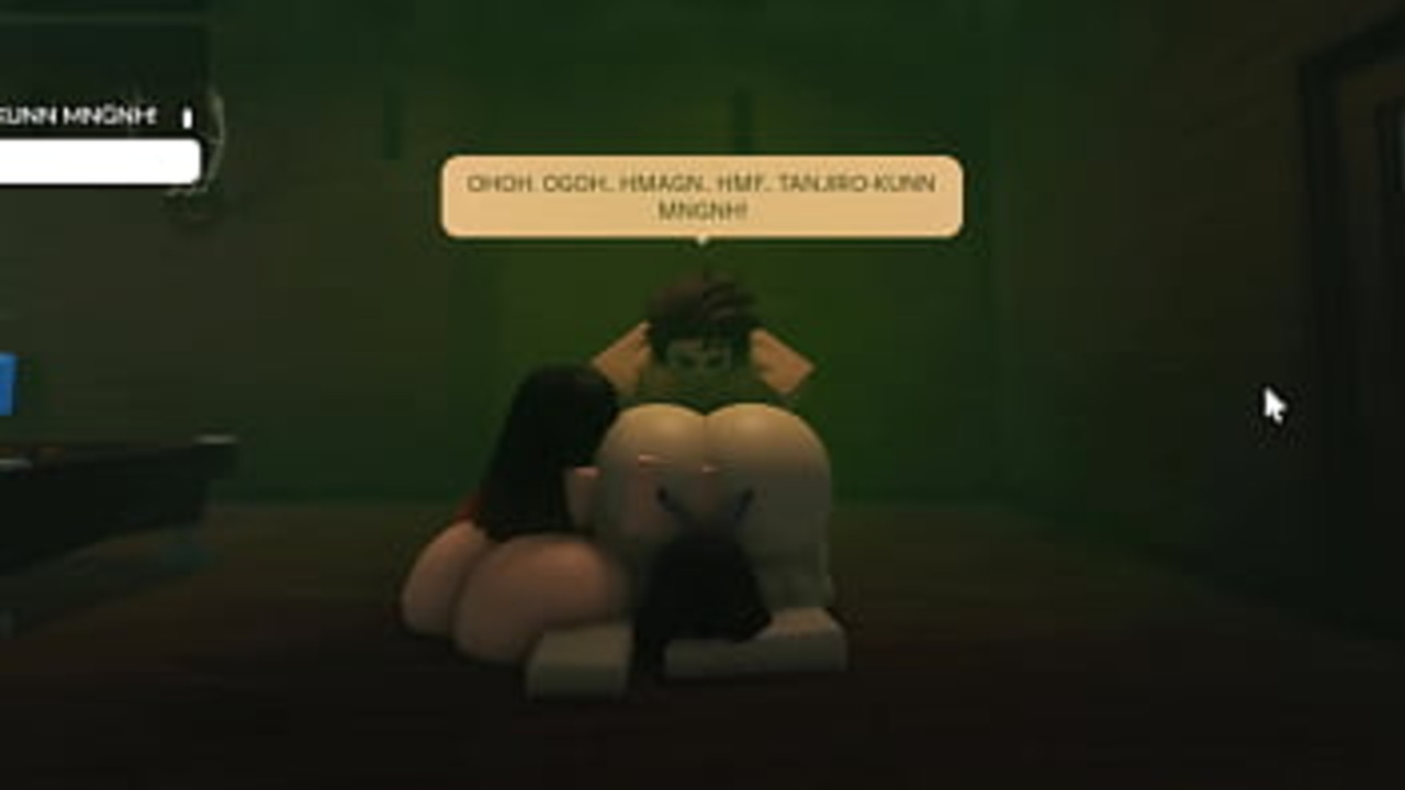 In this ROBLOX cuckold scene, a big-titted demon slayer cheats on her husband with two big-dicked men. She enjoys her pussy pounded and ass filled while he watches. Creampie alert!