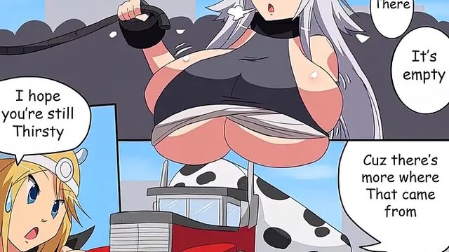 In this intense hentai anime scene, Shino's massive breasts inflate uncontrollably as she forces the mad cow scientist to submit to her giantess form. She uses her enormous boobs to crush him and assert her dominance. The mad cow scientist is humiliated and pleasured at the same time by the giantess's huge boobs.