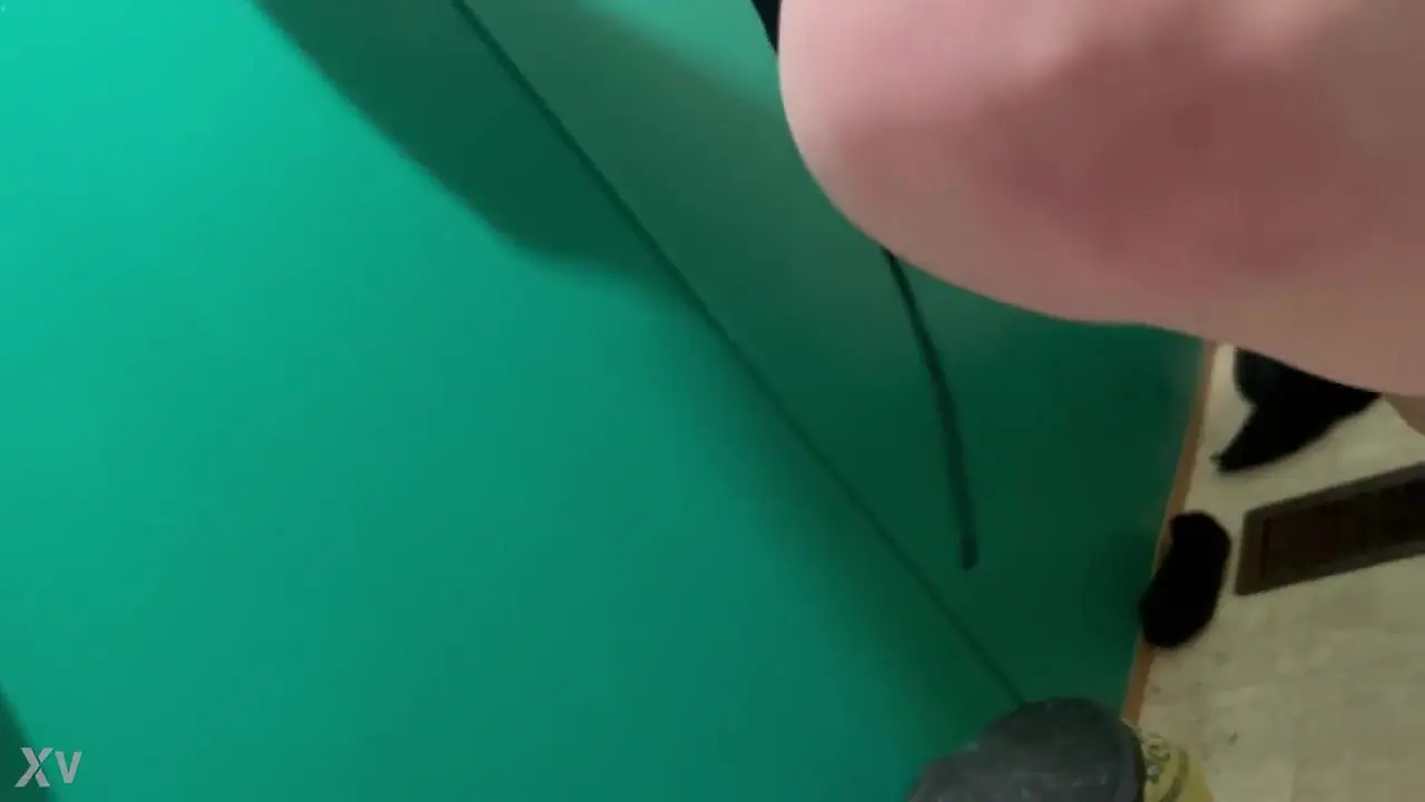 Amateur hottie, girlfriend of the man, gets his huge cock in her petite wet pussy at 4am in a bathroom. She takes it deep and rides it hard. He cums in her and she takes the creampie bareback.