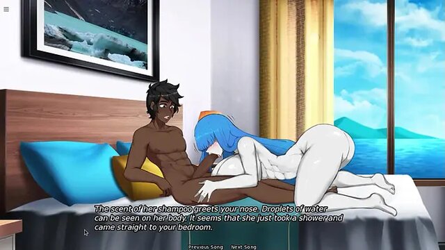 Kana, the fierce fighter, takes a break from her battles to enjoy some relaxation with a fellow giant-titted slut. She gives an amazing blowjob and rides his cock until he fills her with a horny creampie.