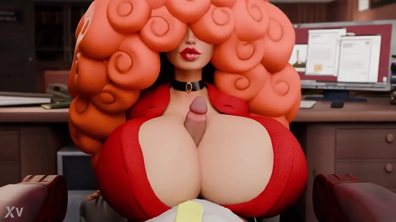 A seductive, busty redhead milf rides her boss's cock while he sits at his desk. She deep throats his hard member before he pounds her from behind. He blows his load all over her big boobs, promoting her to the next level.