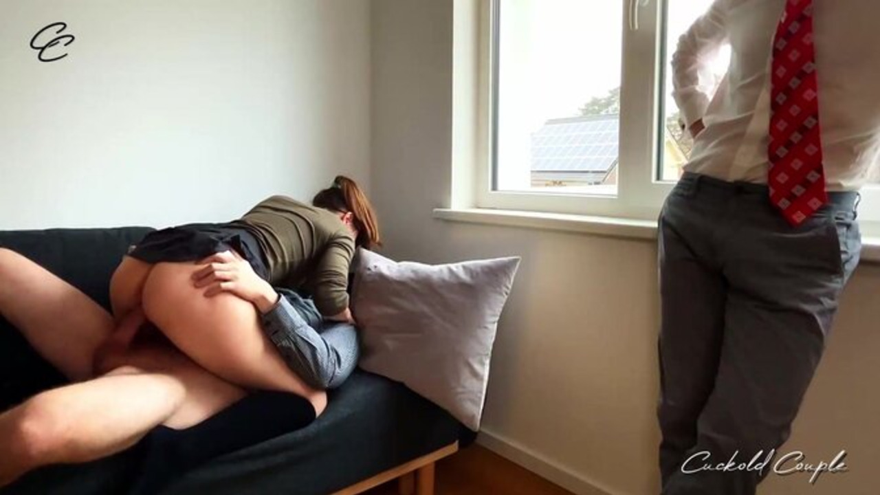 Brunette wife seduces her new boss for a wild and steamy threesome with her husband. They swap spit and ride his huge tool while she's dripping drenched. She loads stiff before they share a massive cumload, all over her face and knockers.