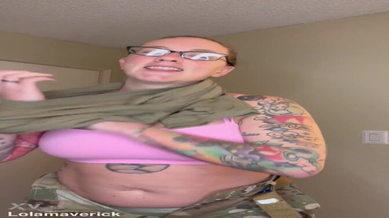 Curvy and sexy military wife Lola Maverick strips down to her uniform and flaunts her massive natural boobs. She teases with her big tits while talking dirty to the camera. This solo milf amateur performance is hot and taboo.